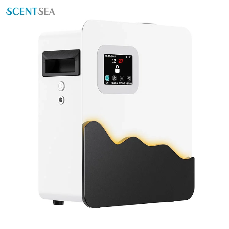 De SCENTSEA Commercial Hotel Air Aroma Diffuser maakt gebruik van het nieuwste TFT-kleurenscherm, een primeur in de gehele aromatherapie-industrie. Dit maakt de instelling handiger en gebruiksvriendelijker. De vernevelingsprestaties zijn uitstekend, waarbij vernevelde deeltjes de nanoschaal bereiken, waardoor problemen met oliesproeien worden geëlimineerd. Bovendien ondersteunt de SCENTSEA Commercial Hotel Air Aroma Diffuser verschillende installatiescenario's, zoals standalone gebruik, wandmontage of aansluiting op een centraal airconditioningsysteem.